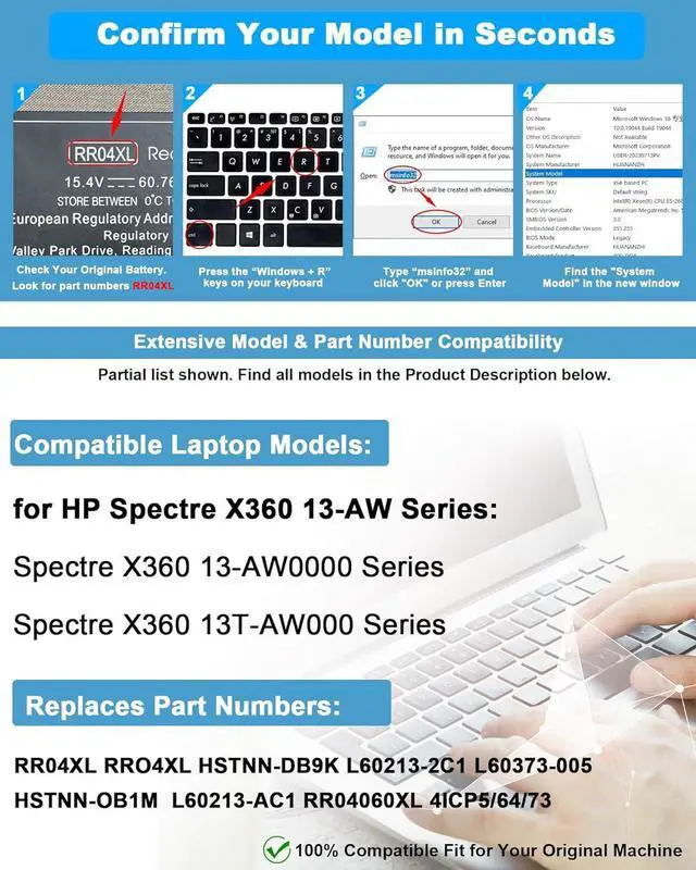 Compatible Laptop Models: Replacement for HP Spectre X360 13-AW Series; fit for HP Spectre X360 13-AW0000 Series; fit for HP Spectre X360 13T-AW000 Series