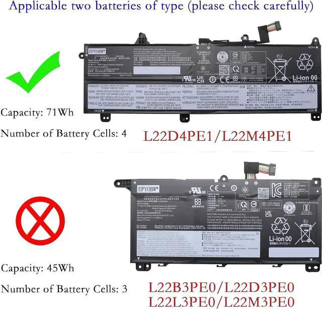 Specifications Battery Model: L22D4PE1 / Voltage: 15.36V / Capacity: 71Wh 4625mAh 4-Cell / Color: Black / Condition: Brand New.