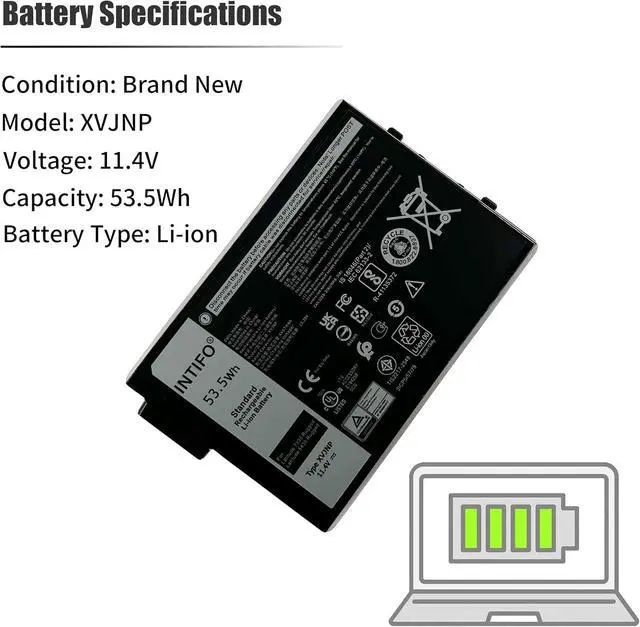 Tech SpecsDevice Type:Notebook Battery, Battery Type:Lithium ion 3-Cell, Voltage:11.4V, Capacity:4457mAh/53.5Wh, Condition:Brand New, Manufacturer Warranty:One-year
