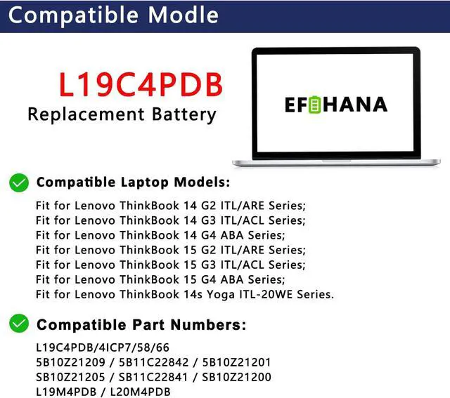 Compatible with Laptop ModelsFit for Lenovo ThinkBook 14 G2 ITL/ARE Series; Fit for Lenovo ThinkBook 14 G3 ITL/ACL Series; Fit for Lenovo ThinkBook 14 G4 ABA Series; Fit for Lenovo ThinkBook 15 G2 ITL/ARE Series; Fit for Lenovo ThinkBook 15 G3 ITL/ACL Series; Fit for Lenovo ThinkBook 15 G4 ABA Series; Fit for Lenovo ThinkBook 14s Yoga ITL-20WE series