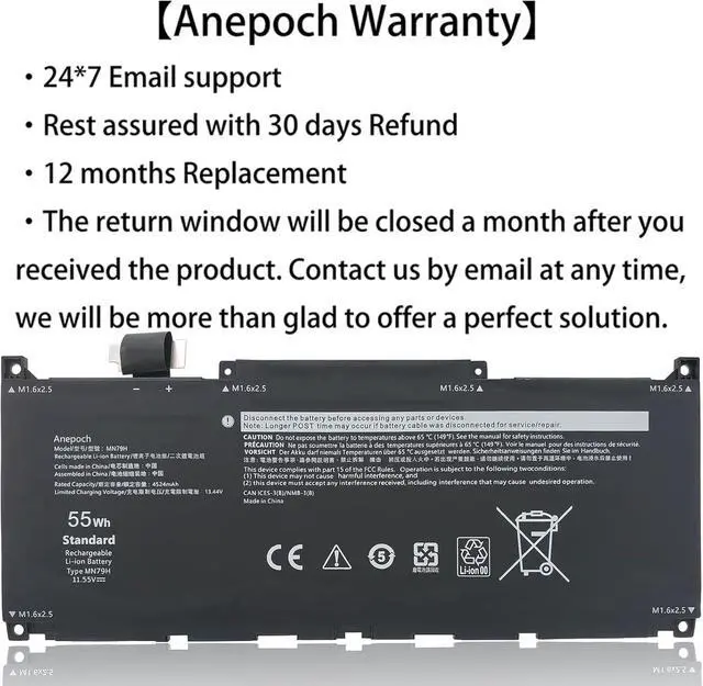 Model: MN79H ; Voltage: 11.55V ; Capacity: 55Wh 4524mAh.
