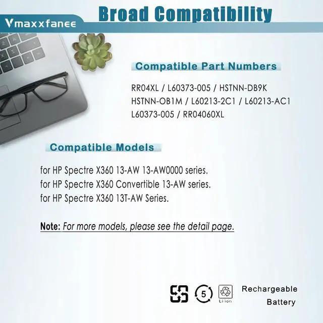 HP RR04XL Compatible laptop Modelsfor Spectre X360 13-AW series. HP Spectre X360 13-AW 13-AW0000 series; HP Spectre X360 Convertible 13-AW series;HP Spectre X360 13T-AW Series.
