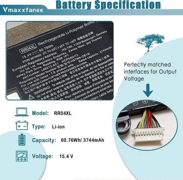 60.76Wh RR04XL Compatible Part NumbersRR04XL RRO4XL L60373-005 L60213-2C1 L60213-AC1 RR04060XL HSTNN-DB9K HSTNN-OB1M 4ICP5/64/73 .