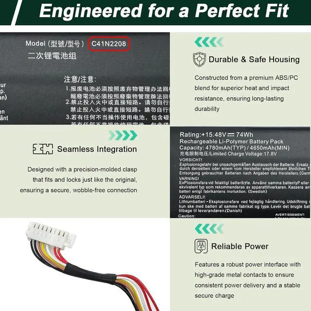 UNLEASH YOUR ROG'S POWER: Bring your high-performance gaming rig back to life. Engineered with Certified Grade-A+ cells, our C41N2208 battery restores original performance, providing longer lifespan, faster charging, and consistent, reliable power for intense gaming sessions and demanding workloads. Stop being tethered to the wall and reclaim your mobility.