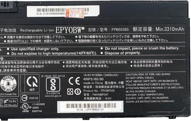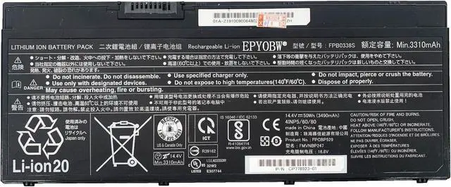Specifications Battery Model: FPB0338S / Voltage: 14.4V / Capacity: 50Wh 3490mAh / Color: Black / Condition: Brand New.