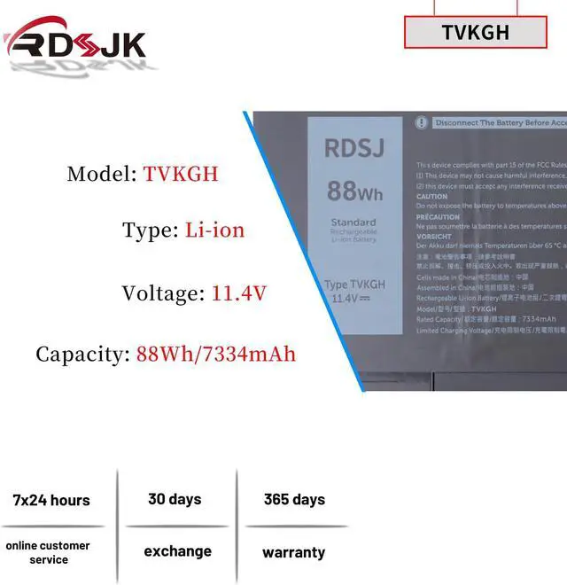 Battery type: Li-ion; Voltage: 11.4V; Capacity: 88Wh/7334mAh; Cells: 6-cell
