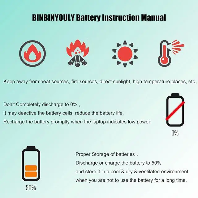 Security CertifiedBINBINYOULY Battery Certified by CE, UL, FCC and RoHS for safety, to Ensure the life of the battery, safety, stability.