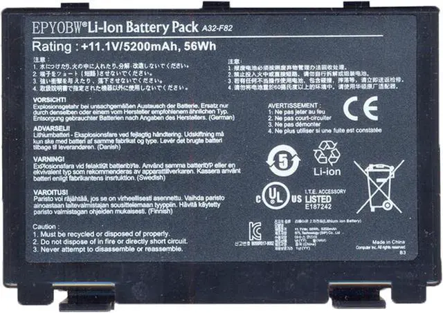 Specifications Battery Model: A32-F82 / Voltage: 11.1V / Capacity: 46Wh 4400mAh 6-Cells / Color: Black / Condition: Brand New.
