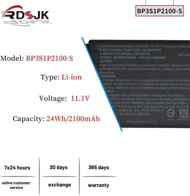 Battery type: Li-ion; Voltage: 11.1V; Capacity: 24Wh/2100mAh; Cells: 3-cell