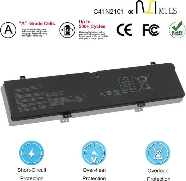 Safety Above AllOur batteries are certified by CE, FCC and RoHS to ensure your safety, and packed with prevention measures like short circuit, overheat and overcharge protection.Our laptop batteries are made with premium materials and circuit boards to ensure performance and durability.