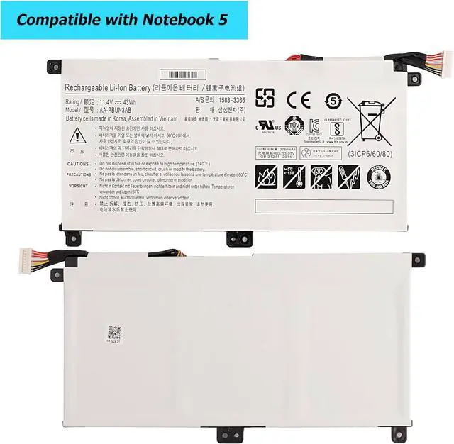 Compatible Model No.:For Samsung Notebook 5 NP300E5K NP530E5M NP550XTA NP740U3L NP740U3M NP740U5L NP740U5M NP800G5M 500R5M 8500GM 300E4M 550XAA 300E5K NP740U Series; For Samsung NP530E5M-X01US NP530E5M-X02US NP530E5M-X03US Series; For S-amsung NP740U3M NP740U3M-K01US Series; For Samsung NP740U5M NP740U5M-X01US Series; For Samsung NP730QAA NP730QAA-K01US NP730QAA-K02US Series; For Samsung NP300E5K NP300E5K-U03 NP300E5K-L04US Series; For Samsung 300E5K-L04 300E5K-L06 Series.