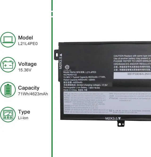 Model: L21L4PE0 // Voltage: 15.36V // Capacity: 71Wh 4623mAh // Color: Black // Type: Plug & Play Li-ion Battery.