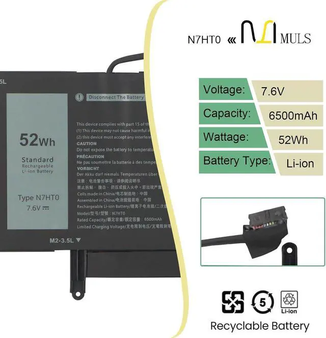 Battery Specification: Capacity: 52Wh 6500mAh Voltage: 7.6V.100% brand new. Up to 500 recharge cycles over the life of the battery.