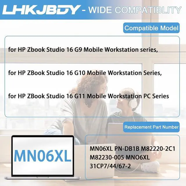Compatible Laptop Models: MN06XL battery for HP Zbook Studio 16 G9 Mobile Workstation series, for HP ZBook Studio 16 G10 Mobile Workstation Series, for HP ZBook Studio 16 G11 Mobile Workstation PC Series notebook