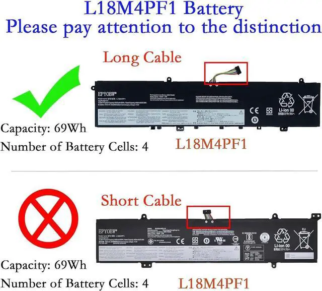 SpecificationsBattery Model: L18M4PF1(Long cable) / Voltage: 15.36V / Capacity: 69Wh 4500mAh 4-Cell / Color: Black / Condition: Brand New.