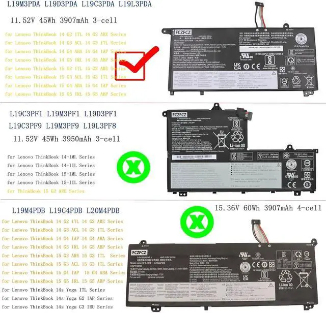 Compatible with Machine Modelsfor Lenovo ThinkBook 15 G4 ABA Series (Type: 21DL); for Lenovo ThinkBook 15 G4 IAP Series (Type: 21DJ); for Lenovo ThinkBook 15 G5 IRL Series (Type: 21JD); for Lenovo ThinkBook 15 G5 ABP Series (Type: 21JF) (There have 3 batteries types for all laptop in this listing, and can not fit for each others. Of which only one is suitable for your laptop. In order to save your time and money, we strongly recommend that you open the back cover of your laptop to determine that the type of battery you need before purchasing.)