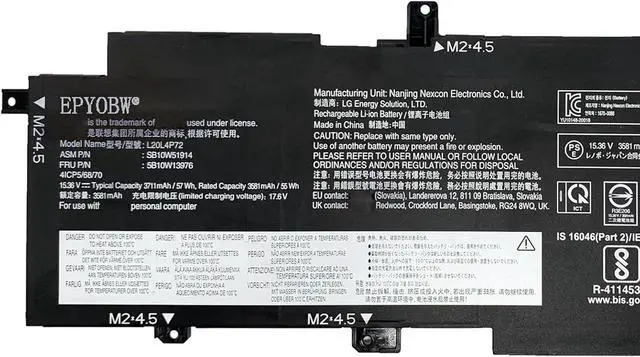 SpecificationsBattery Model: L20L4P72 / Voltage: 15.36V / Capacity: 57Wh 3711mAh 4-Cell / Color: Black / Condition: Brand New.
