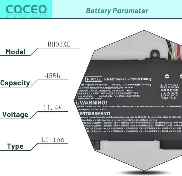 Replacement Part Number: RH03XL RHO3XL M01524-1D1 M01524-171 M01524-541 M01524-2C1 M01524-2B1 M02027-005 M01524-AC1 TPN-Q517 HSTNN-OB1T HSTNN-IB9Q HSTNN-DB0B TPN-DB0B HSTNN-UB7X HSTNN-IB9P TPN-IB0L