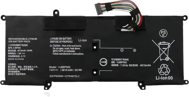 SPECIFICATION : Model Name: VJ8BPS52 Voltage: 7.6V; Capacity: 35Wh/4610mAh; Cells: 4-cell; Grade A cells ensure fast charges and low power consumption; Built-in circuit protection ensures both safety and stability. Condition: 100% New; Battery life: More than 1000 cycles.