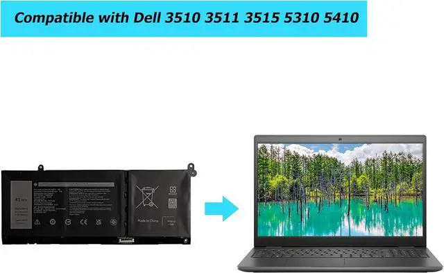 Compatible Model No.:For Dell In-spiron 3510 3511 3515 3520 3521 3525 3530 3535 5310 5320 5410 5415 5418 5420 5425 5430 5435 5510 5515 5518 5625 5630 5635 / In-spiron 14 Plus 7420 series; for Dell In-spiron 5410 2-in-1; 7415 2-in-1 7420 2-in-1; 7425 2-in-1; 7430 2-in-1; 7435 2-in-1; for Dell Latitude 3320 3330 3420 3430 3520 3530 series; for Dell Vostro 3510 3511 3515 3520 3525 3530 3535 5310 5320 3420 3425 3430 3435 5410 5415 5510 5515 5620 5625 5630 5635 seriesNotebook battery.Capacity:41Wh ,Voltage:11.25V.Make sure your device is suitable for this replacement battery before ordering.
