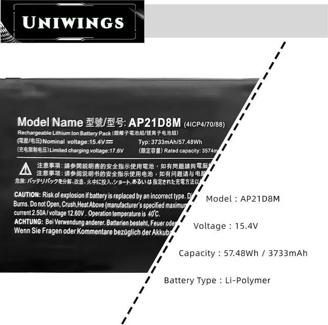Voltage: 15.4V. Capacity:57.48Wh / 3733mAh. Battery Type: Li-Polymer.