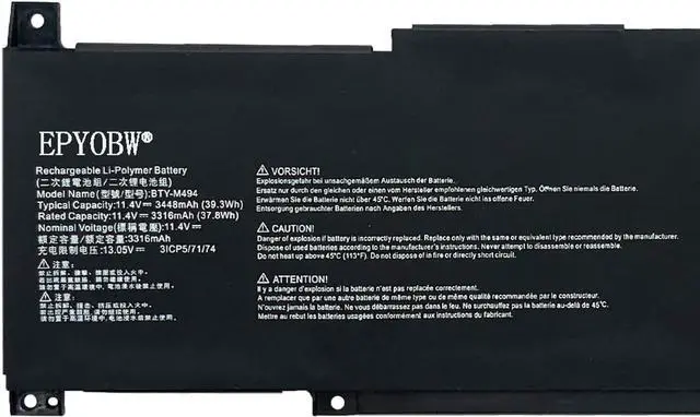 Specifications Battery Model: BTY-M494 / Voltage: 11.4V / Capacity: 39.3Wh 3448mAh 3-Cell / Color: Black / Condition: Brand New.