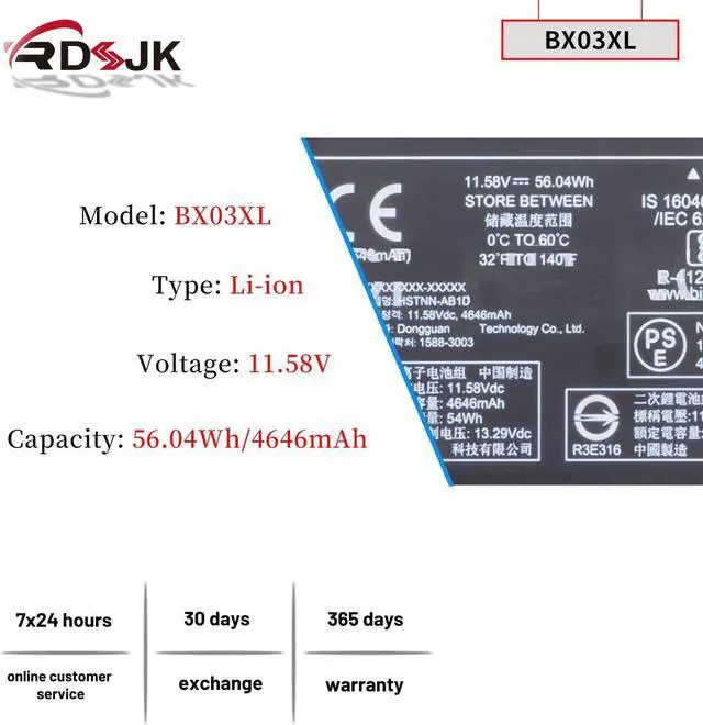 Replace Part Numbers: BX03XL TPN-IB0Y N59733-171 HSTNN-OB3H N59733-AC1 N59787-005 BX03056XL HSTNN-AB1D N59733-B71 996QA249H 3ICP6/60/75 BXO3XL