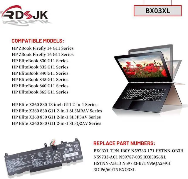 Compatible Models: Replacement for HP ZBook Firefly 14 G11 Series; for HP ZBook Firefly 16 G11 Series; for HP EliteBook 830 835 840 845 860 865 G11 Series; for HP Elite X360 830 13 inch G11 2-in-1 Notebook PC Series; for HP Elite X360 830 G11 2-in-1 8L3M9AV 8L3P5AV 8L3Q2AV Series; for HP EliteBook 835 13 inch G11 Notebook PC Series; for HP EliteBook 835 G11 8Q5V3AV A24LBPAHP Series; for HP EliteBook 840 14 inch G11 Notebook PC Series; for HP EliteBook 860 865 16 inch G11 Notebook PC Series