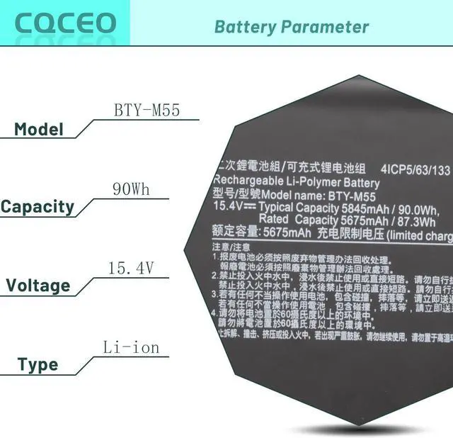 Replacement Part Number:BTY-M55 925QA055H 4ICP5/63/133