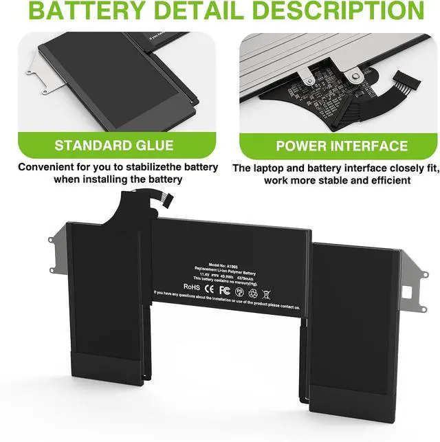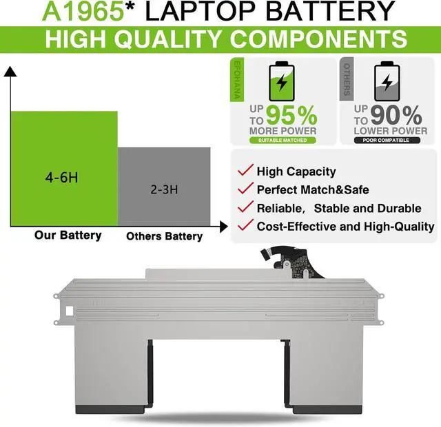 SpecificationsModel:A1965// Battery type: Li-ion // Voltage: 11.4V// Capacity: 49.9Wh // 100% New from Manufacturer. Top circuit boards and smart chip.