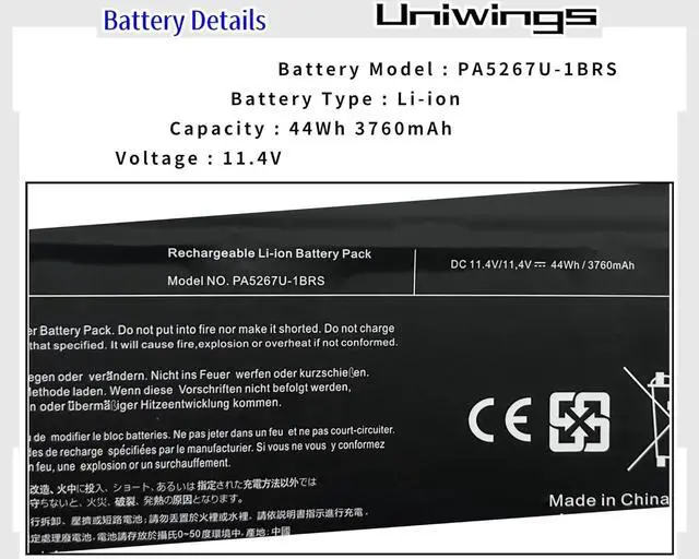 Model: PA5267U-1BRS , Capacity: 44Wh 3760mAh Voltage: 11.4V. Battery Type: Li-ion ,