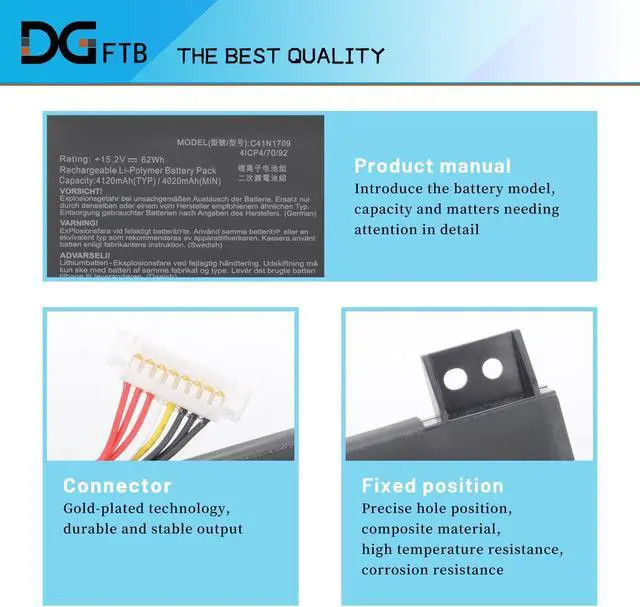 DG QualityGrade A cells mitigate the risk of battery leakage and maximize output stability. Built-in circuit protection, enhances safety of usage and extends battery life.