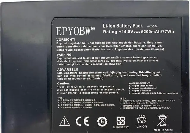 SpecificationsBattery Model: A42-G74 / Voltage: 14.4V / Capacity: 74Wh 5200mAh 8-Cells / Color: Black / Condition: Brand New.
