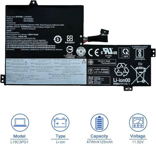 • Compatible original Battery Codes L19C3PG1 5B10X65682 5B11A25392 L19M3PG1 SB10X68685 5B10X65680 5B11A25394 L19L3PG1 5B10X65684 5B11A25390