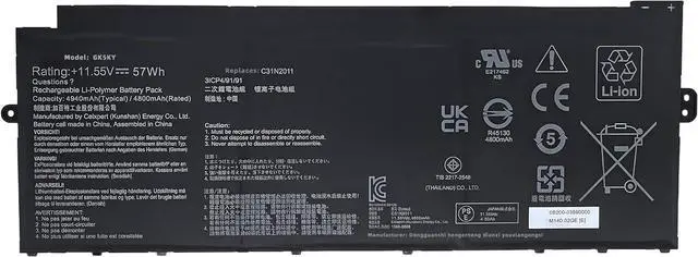 SPECIFICATION : Model Name:C31N2011 Voltage: 11.55V // Capacity: 57Wh 4940mAh Grade A cells ensure fast charges and low power consumption; Built-in circuit protection ensures both safety and stability. Condition: 100% New; Battery life: More than 1000 cycles.