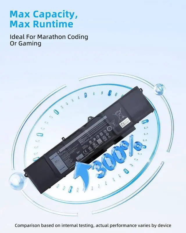 SPECIFICATION : Model Name:9JRVO Voltage:11.4V/ Capacity:97Wh 8071mAh Grade A cells ensure fast charges and low power consumption; Built-in circuit protection ensures both safety and stability. Condition: 100% New; Battery life: More than 1000 cycles.
