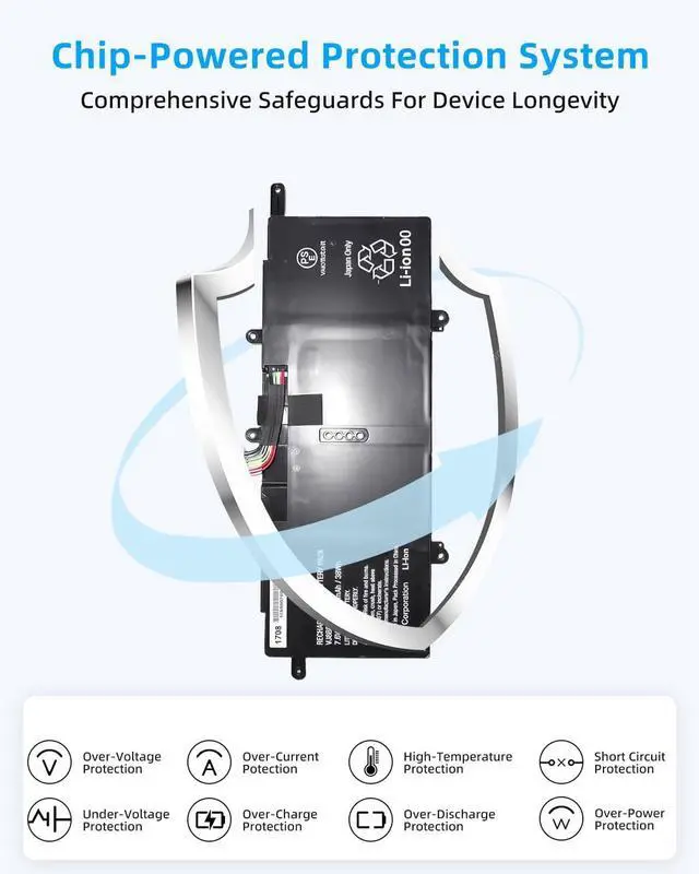 • SPECIFICATION : Model Name: VJ8BPS48 Voltage: 7.6V; Capacity: 38Wh/5000Ah; Cells: 4-cell; Grade A cells ensure fast charges and low power consumption; Built-in circuit protection ensures both safety and stability. Condition: 100% New; Battery life: More than 1000 cycles.