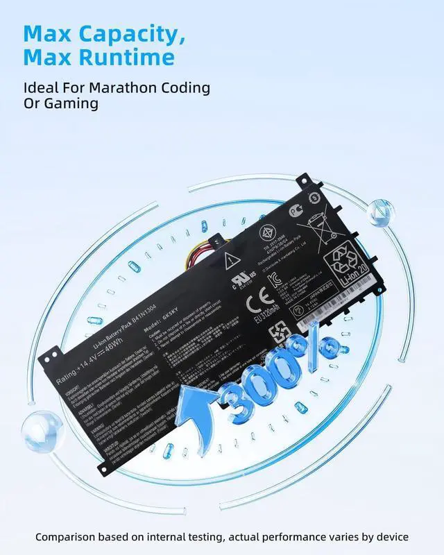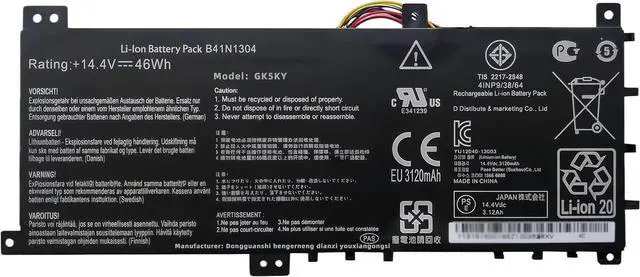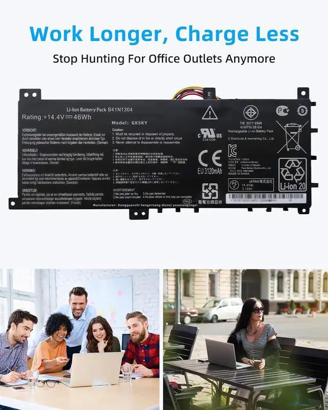 SPECIFICATION : Model Name:B41N1304 Voltage: 14.4V Capacity: 46Wh 3120mAh Grade A cells ensure fast charges and low power consumption; Built-in circuit protection ensures both safety and stability. Condition: 100% New; Battery life: More than 1000 cycles.