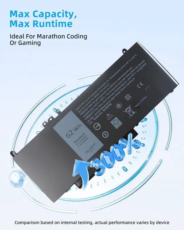 SPECIFICATION : Model Name: 6MT4T Voltage: 7.6V; Capacity: 62Wh; Grade A cells ensure fast charges and low power consumption; Built-in circuit protection ensures both safety and stability. Condition: 100% New; Battery life: More than 1000 cycles.