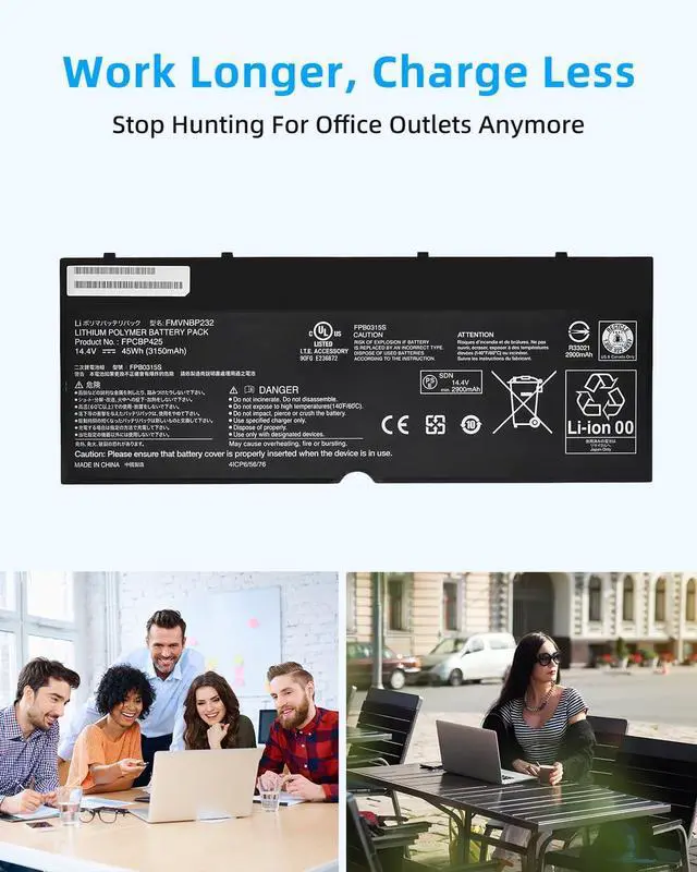 SPECIFICATION : Model Name: FMVNBP232 FPB0315S FPCBP425AP Voltage: 14.4V // Capacity: 45Wh/3150mAh; Grade A cells ensure fast charges and low power consumption; Built-in circuit protection ensures both safety and stability. Condition: 100% New; Battery life: More than 1000 cycles.