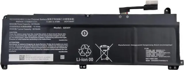 SPECIFICATION : Model Name: V150BAT-3-41 Voltage: 11.55V; Capacity: 41Wh 3410mAh;Grade A cells ensure fast charges and low power consumption; Built-in circuit protection ensures both safety and stability. Condition: 100% New; Battery life: More than 1000 cycles.