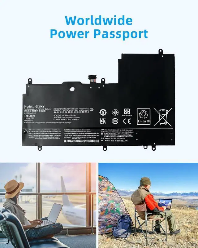 SPECIFICATION : Model Name: L14M4P72 Voltage: 7.4V. Capacity: 45Wh 6280mAh; Grade A cells ensure fast charges and low power consumption; Built-in circuit protection ensures both safety and stability. Condition: 100% New; Battery life: More than 1000 cycles.