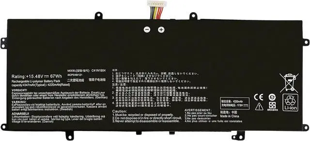 SPECIFICATION : Model Name: C41N1904 Voltage: 15.48V; Capacity: 67Wh/4347mAh cell: 4-cell ; Grade A cells ensure fast charges and low power consumption; Built-in circuit protection ensures both safety and stability. Condition: 100% New; Battery life: More than 1000 cycles.