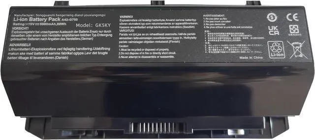SPECIFICATION : Model Name:A42-G750 Voltage: 15V Capacity: 5900mAh/88WH; Grade A cells ensure fast charges and low power consumption; Built-in circuit protection ensures both safety and stability. Condition: 100% New; Battery life: More than 1000 cycles.
