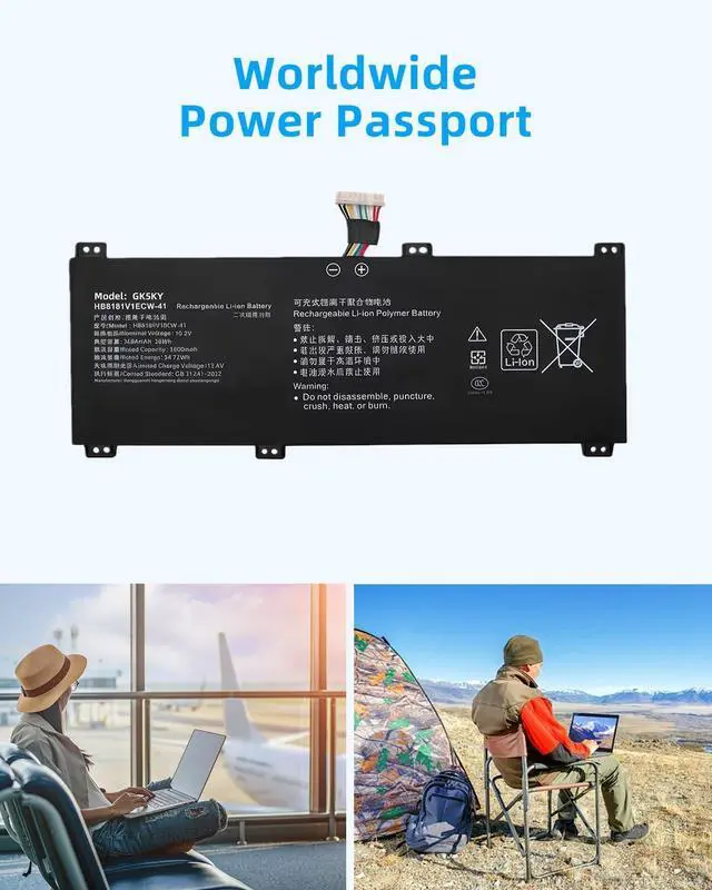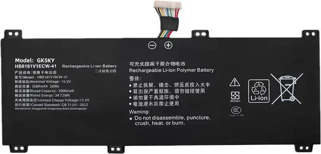SPECIFICATION : Model Name:HB6181V1ECW-41 Capacity: 3665mAh/56WH Voltage: 15.28V Grade A cells ensure fast charges and low power consumption; Built-in circuit protection ensures both safety and stability. Condition: 100% New; Battery life: More than 1000 cycles.