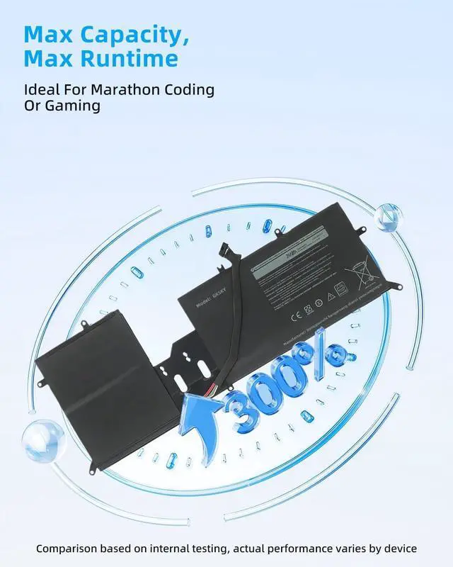 SPECIFICATION : Model Name:Y9M6F Capacity :76Wh/6334MAH Voltage :11.4VCell :6-Cell Replace P; Grade A cells ensure fast charges and low power consumption; Built-in circuit protection ensures both safety and stability. Condition: 100% New; Battery life: More than 1000 cycles.
