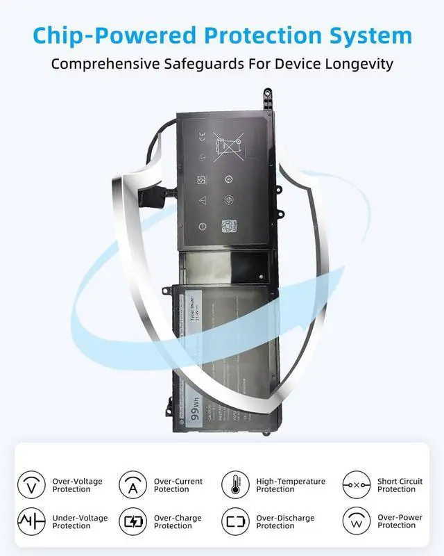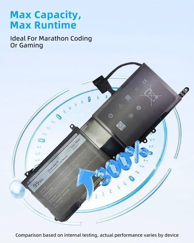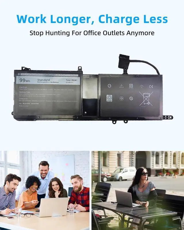 SPECIFICATION : Model Name: 9NJM1 Voltage : 11.4V; Capacity : 99Wh; Cells: 6-Cell; Size about 10.25x3.5x0.5in, Weight: About 18OZ / 1.13lb; Grade A cells ensure fast charges and low power consumption; Built-in circuit protection ensures both safety and stability. Condition: 100% New; Battery life: More than 1000 cycles.