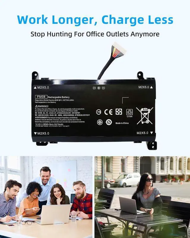 • COMPATIBLE P/N: FM08 HQ-TRE TPN-Q195 922752-421 922753-421 922976-855 922977-855 HSTNN-LB8B HSTNN-LB8A(This FM08 battery have two types of connector, 16-PIN connector and 12-PIN connector. This is a 16-pin connector FM08 battery.)