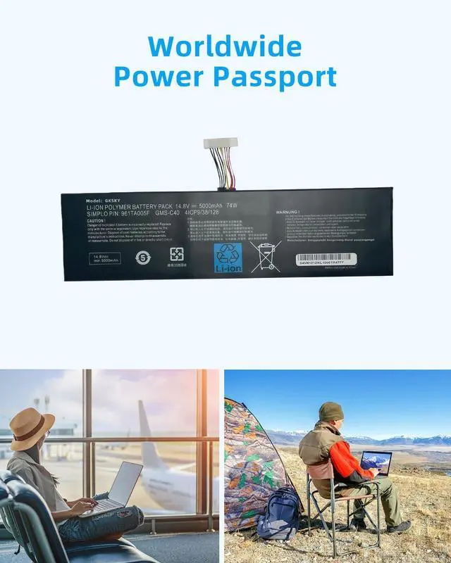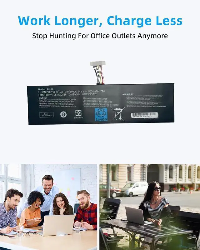 SPECIFICATION : Model Name:GMS-C40 Voltage: 14.8V ; Capacity: 74Wh/5000mAh Grade A cells ensure fast charges and low power consumption; Built-in circuit protection ensures both safety and stability. Condition: 100% New; Battery life: More than 1000 cycles.