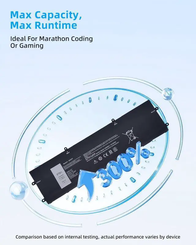 SPECIFICATION : Model Name:DWVRR Voltage: 11.4V / Capacity: 87Wh 7250mAh 6-Cell Grade A cells ensure fast charges and low power consumption; Built-in circuit protection ensures both safety and stability. Condition: 100% New; Battery life: More than 1000 cycles.
